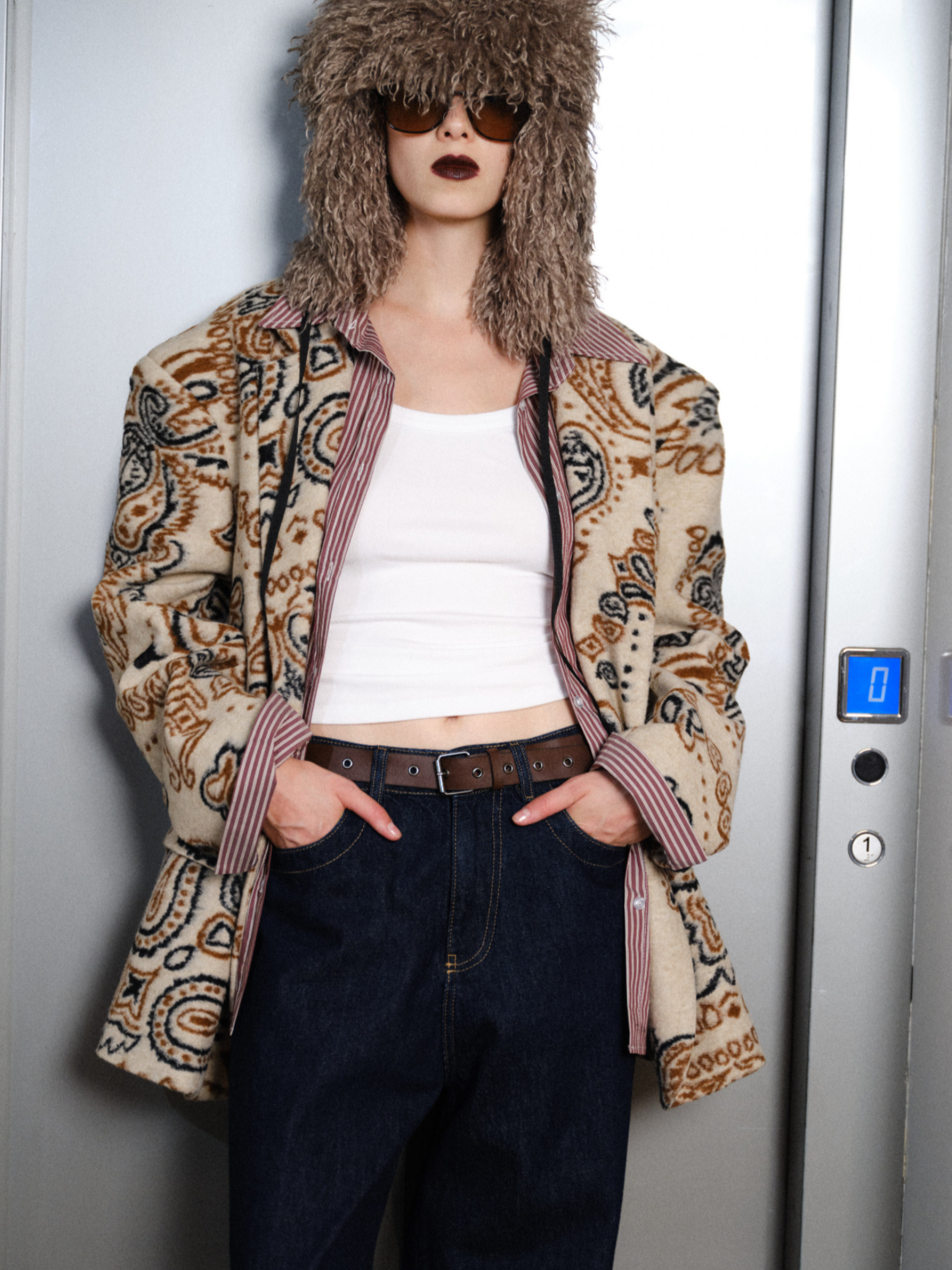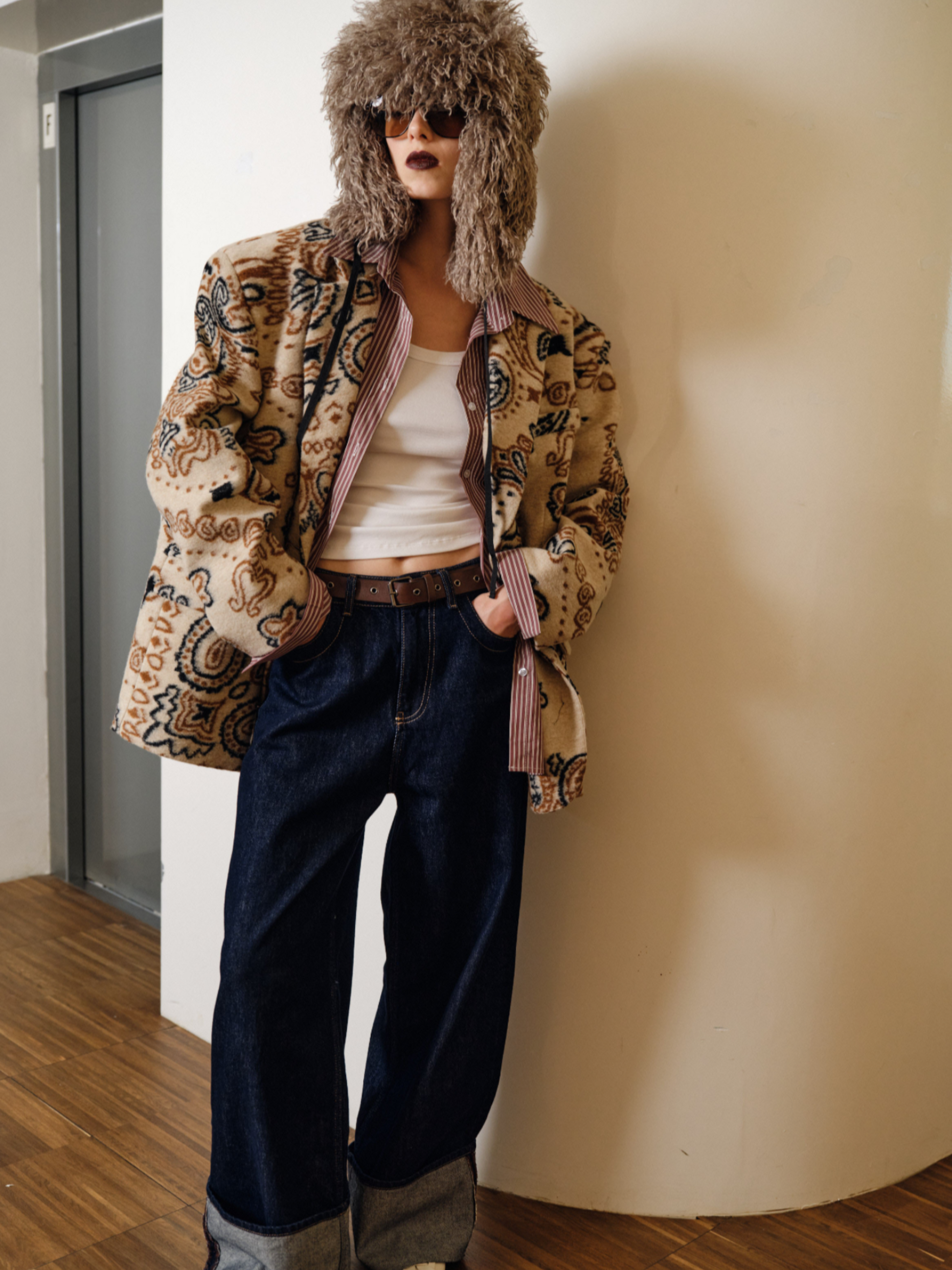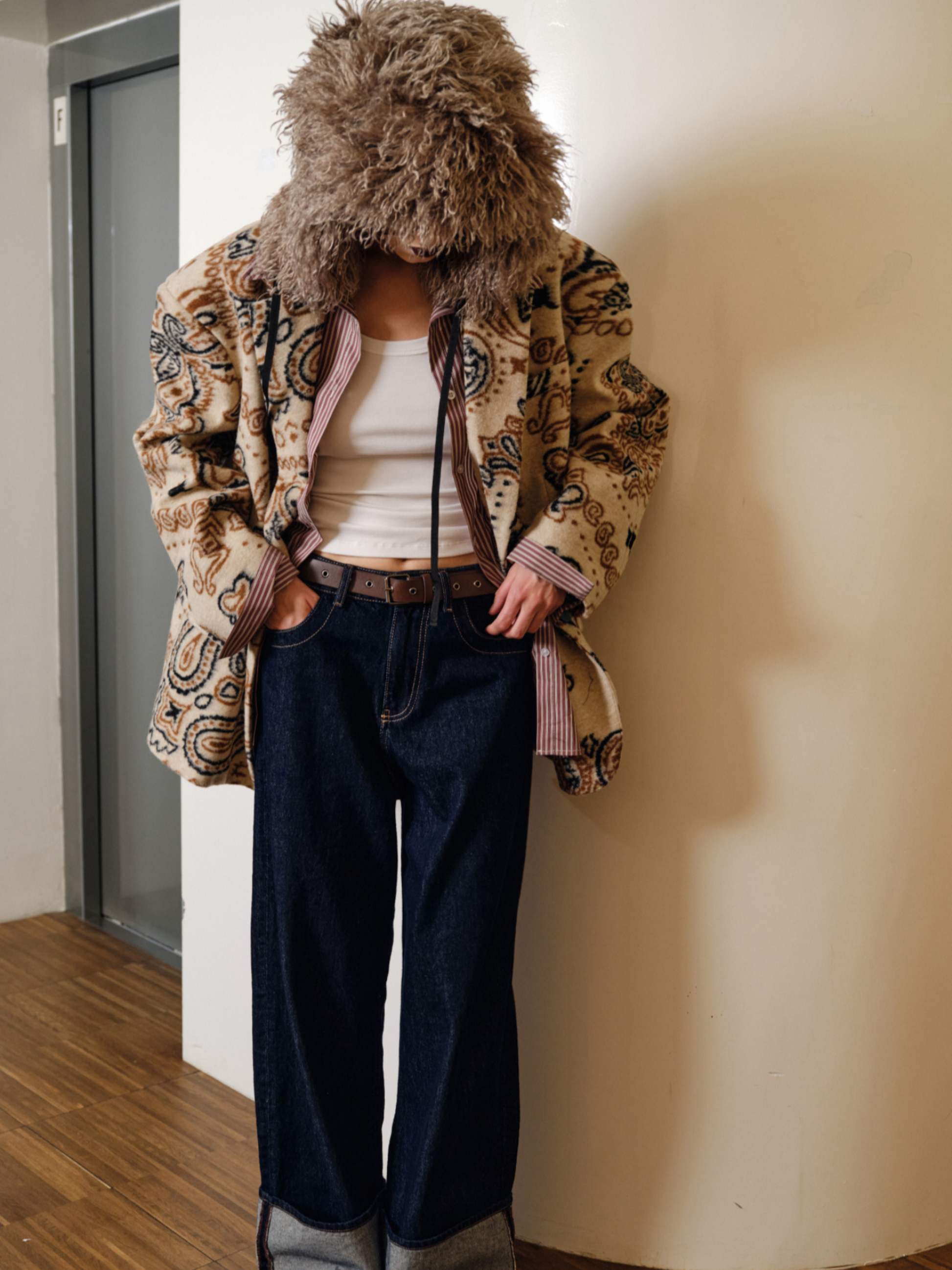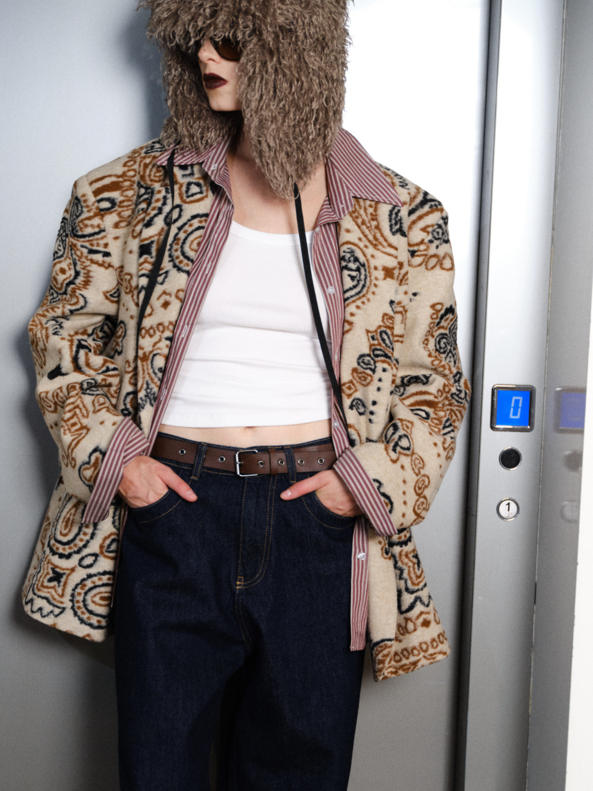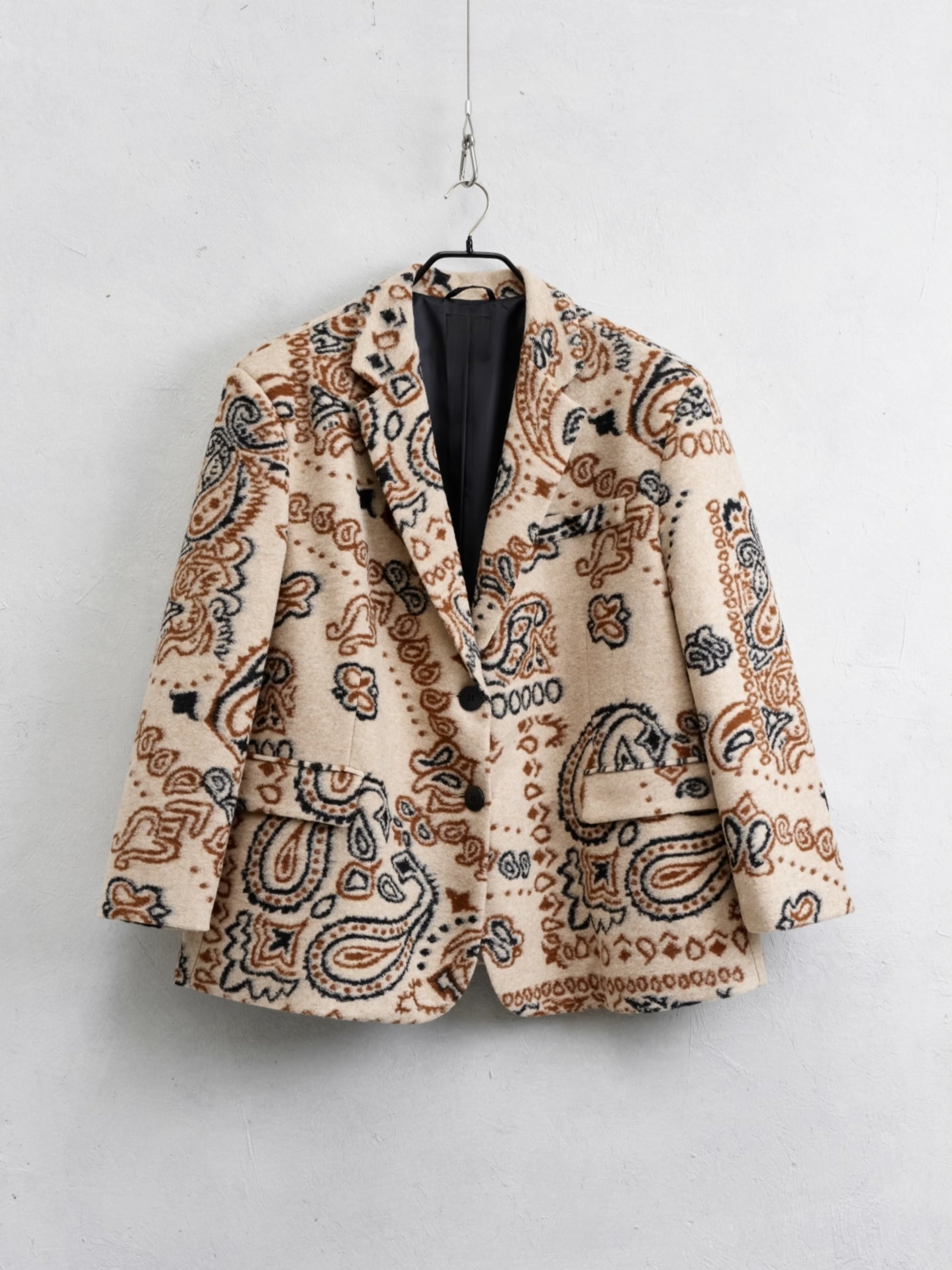 Esta americana oversize presenta un clásico estampado paisley sobre un tejido de paño de alta calidad, combinando un diseño atemporal con volumen moderno. Su corte estructurado pero relajado ofrece sofisticación y comodidad, convirtiéndola en una prenda versátil para estilismos que van del día a la noche. La textura suave del paño proporciona calidez y durabilidad, ideal para temporadas frías sin perder una silueta elegante.
