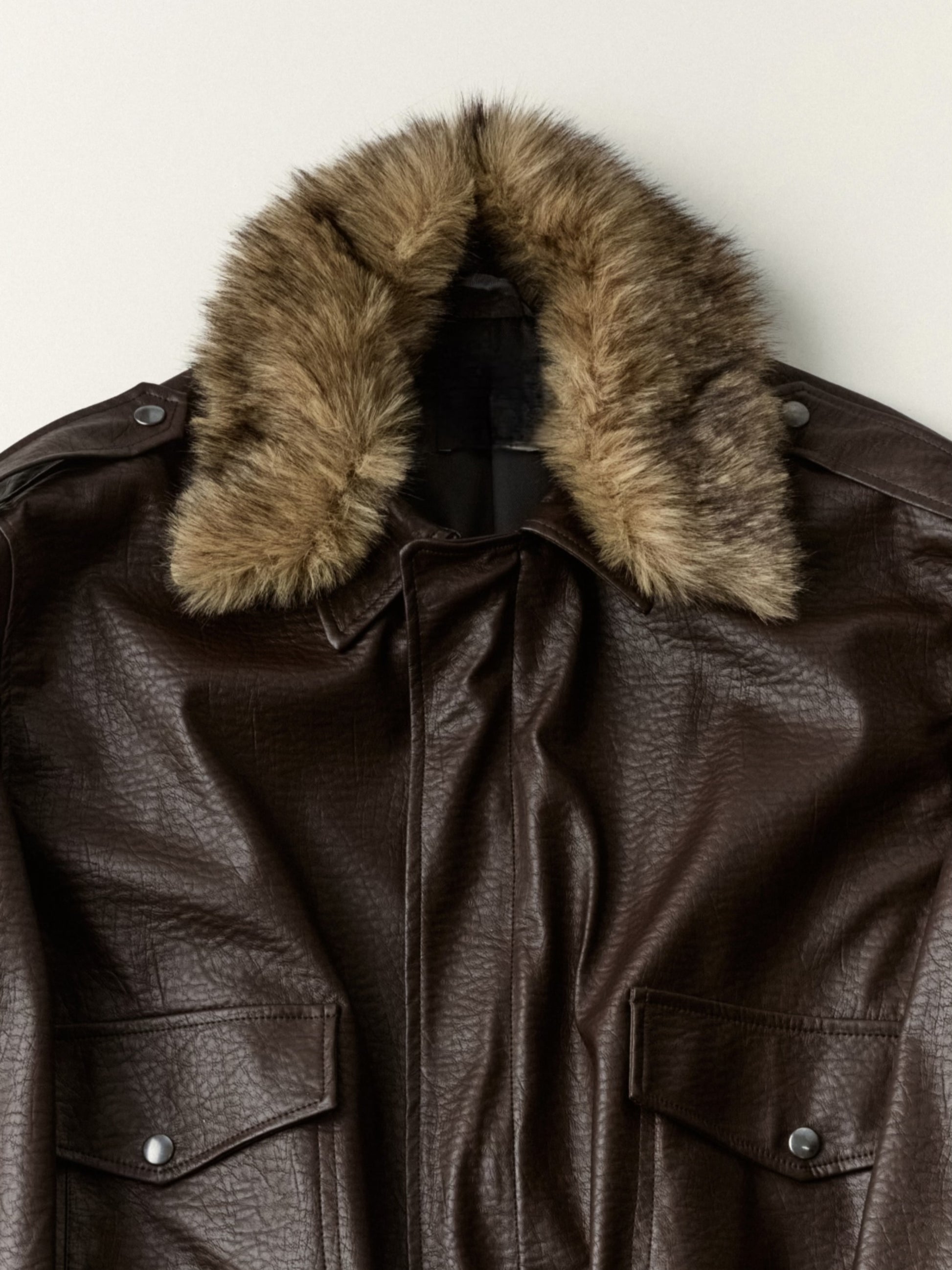 Esta cazadora bomber combina la textura del efecto cuero con un acabado sofisticado gracias a su cuello de pelo, que aporta calidez y un toque elegante. Su diseño clásico se adapta a múltiples estilos, proporcionando una prenda versátil ideal para las estaciones más frescas. La calidad del material asegura durabilidad y comodidad, convirtiéndola en una inversión práctica y estilosa para cualquier armario.