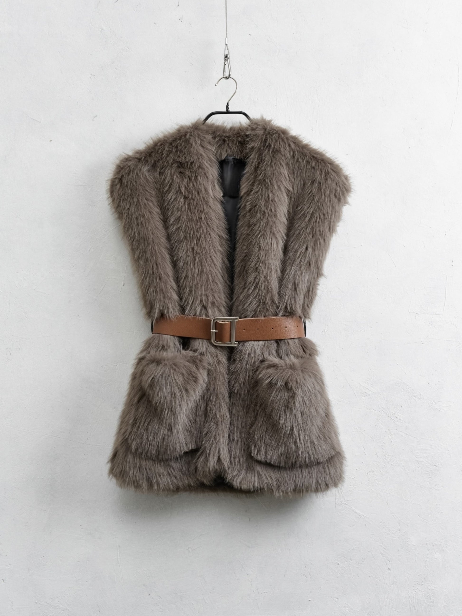 Este chaleco con acabado en pelo está disponible en dos colores elegantes, ofreciendo una opción versátil para combinar con diversos estilos. Su textura aporta calidez y sofisticación, convirtiéndolo en una pieza clave para quienes buscan un equilibrio entre confort y diseño contemporáneo.