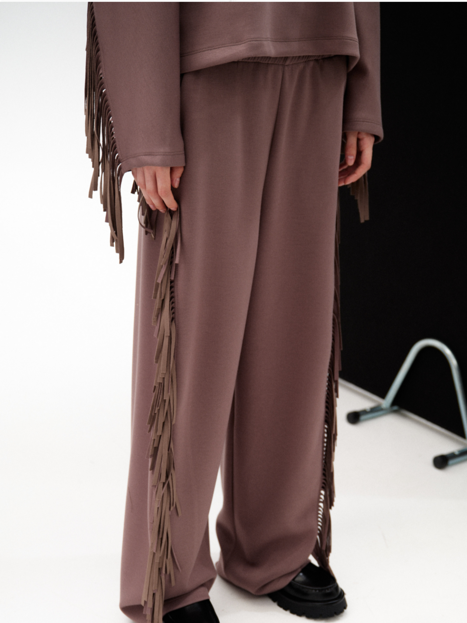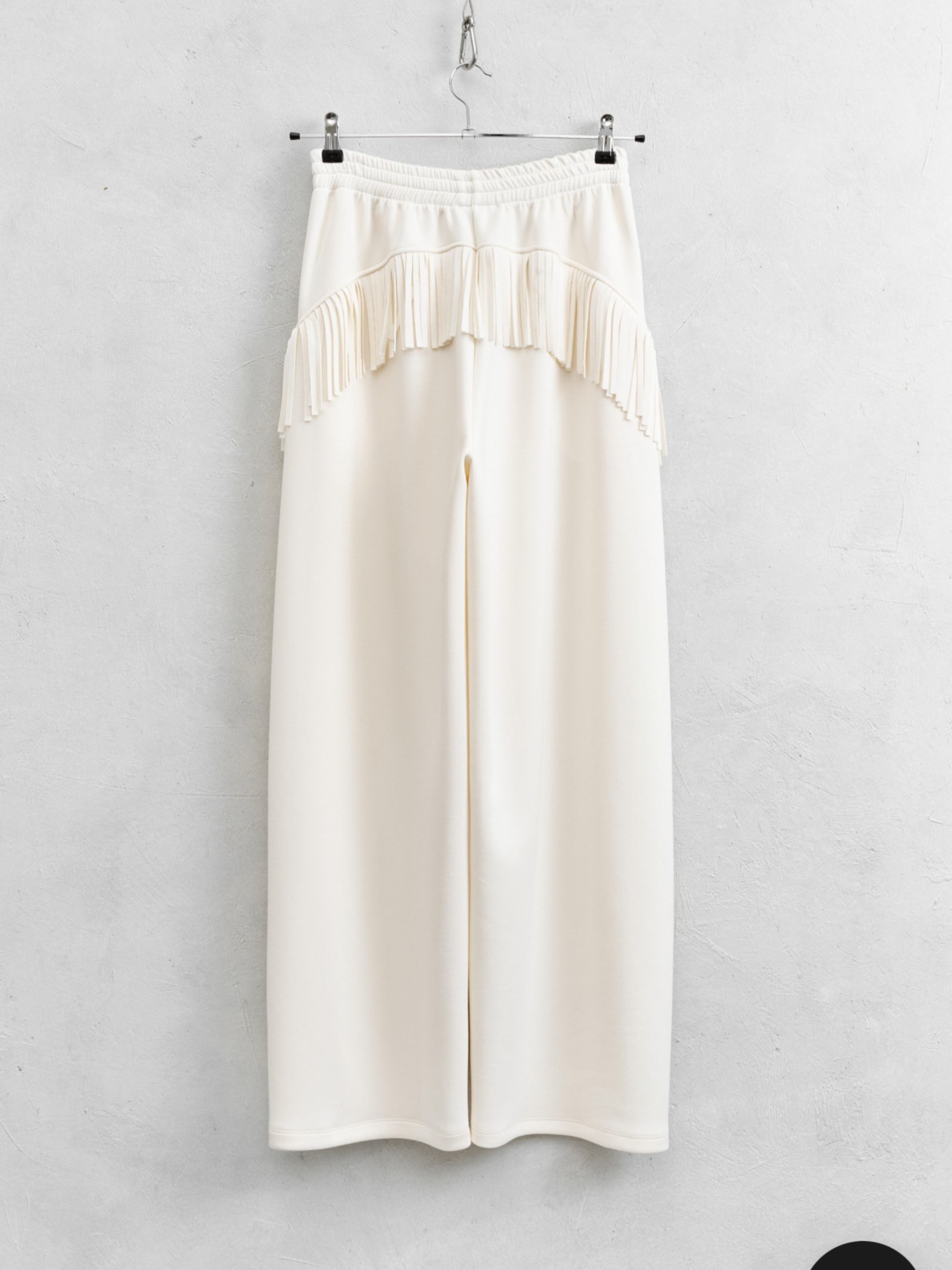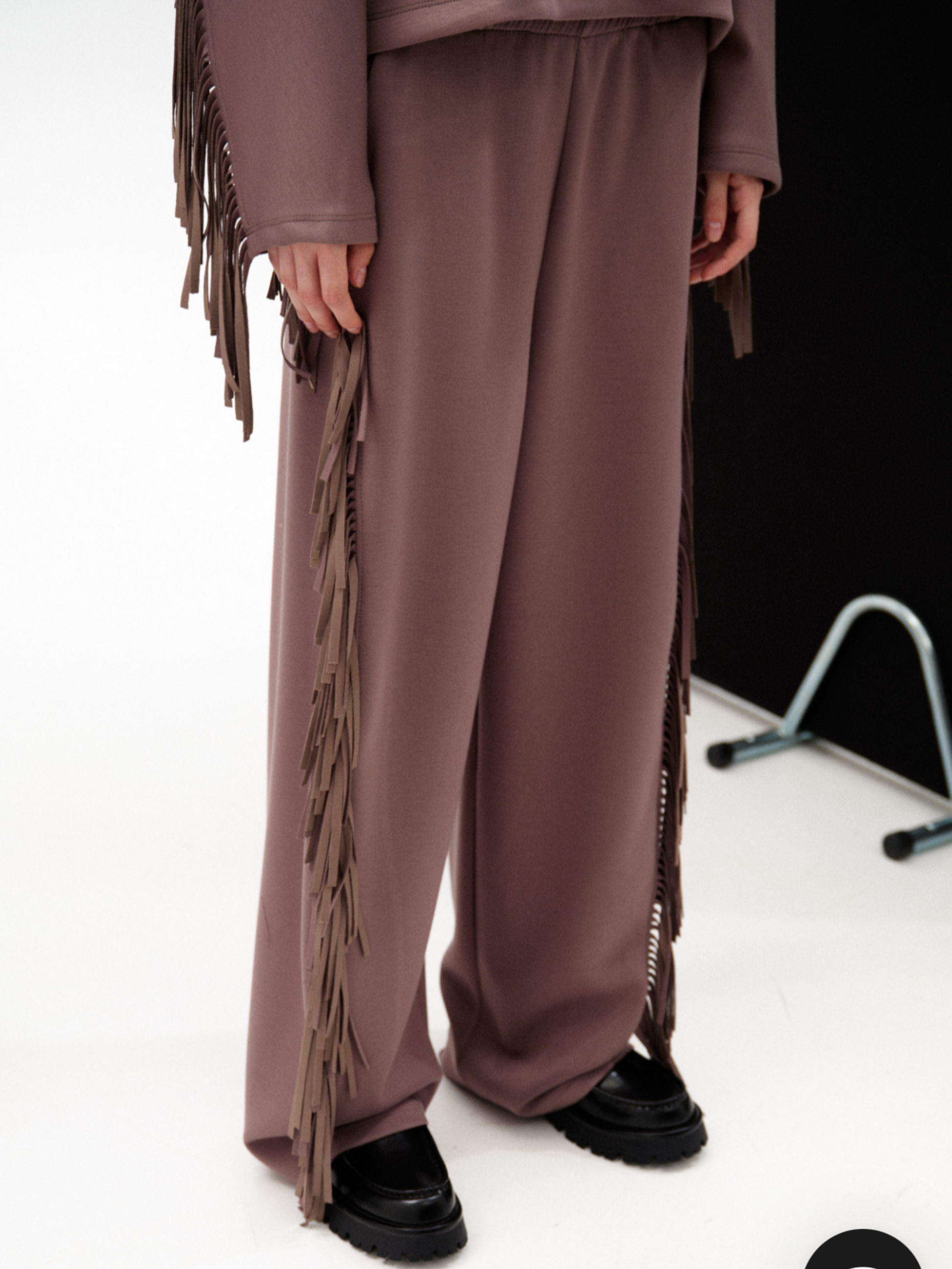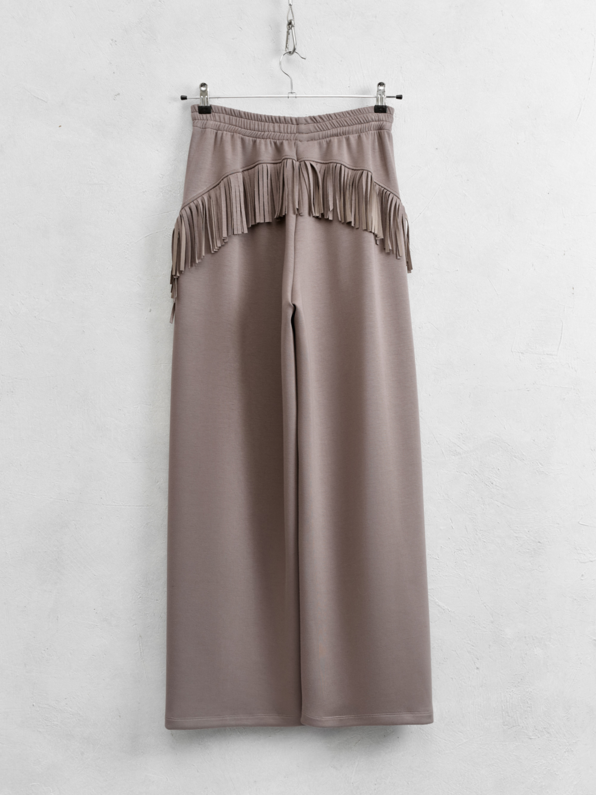 Este pantalón sporty flecos fusiona comodidad y atrevimiento con un tejido fluido y un corte recto que favorece la silueta. Los flecos que descienden desde la parte trasera por los laterales aportan un movimiento vibrante y arriesgado. Combínalo con la sudadera y el cárdigan de flecos para crear un conjunto impactante y lleno de personalidad, listo para destacar en cualquier ocasión.