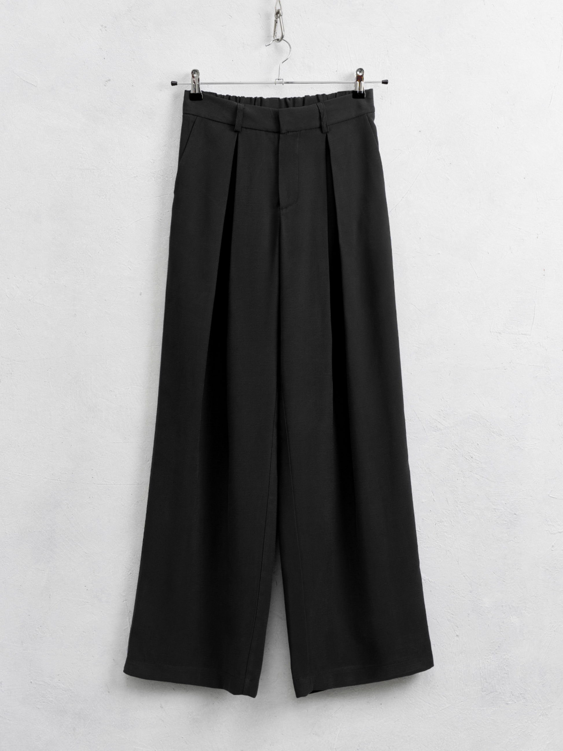 Descubre el pantalón pinzas en color negro, tu nuevo aliado con estilo y comodidad. Con bolsillos laterales y goma en la cintura que se adapta a ti, combina elegancia con libertad de movimiento. Perfecto para darle un toque chic y sin complicaciones a tu día. ¡Atrévete a disfrutar la comodidad con un guiño divertido!