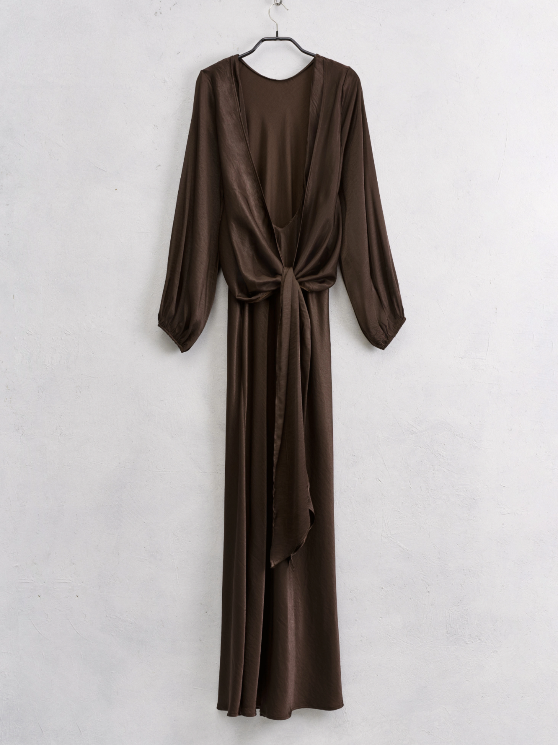 Este vestido largo de satén combina elegancia y sofisticación con un diseño que destaca por su escote en la espalda, aportando un toque sensual y moderno. La lazada en la parte posterior no solo realza la figura, sino que también ofrece un ajuste personalizado para mayor comodidad. Perfecto para ocasiones especiales, su acabado satinado garantiza un brillo sutil que realza cualquier estilo con distinción.